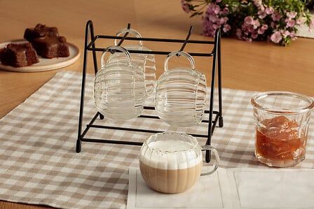 TAZA PUMPKIN VIDRIO SET 4 C/SOPORTE 18CL REF.207161