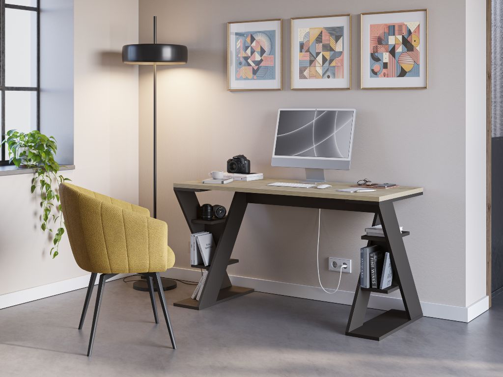 ESCRITORIO BUTTERFLY DE 137CM REF. 17063 ROBLE/NEGRO SILKY