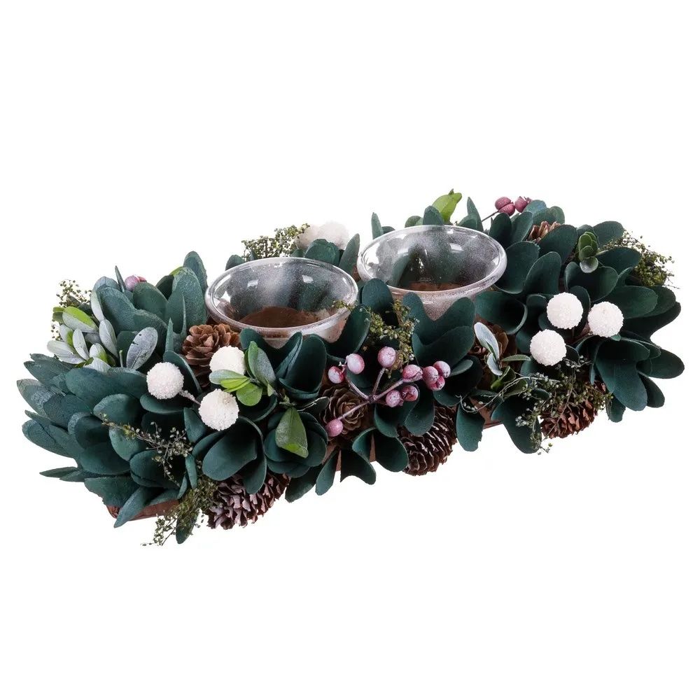 CENTRO 2 PORTAVELA FOLLAJE ACEBO 30X15X9 REF.742794 VERDE
