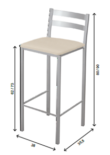 Ancho 34cm Fondo 38cm Alto asiento 62cm Alto respaldo 80cm Estructura metal blanco Asiento piel sitética beige