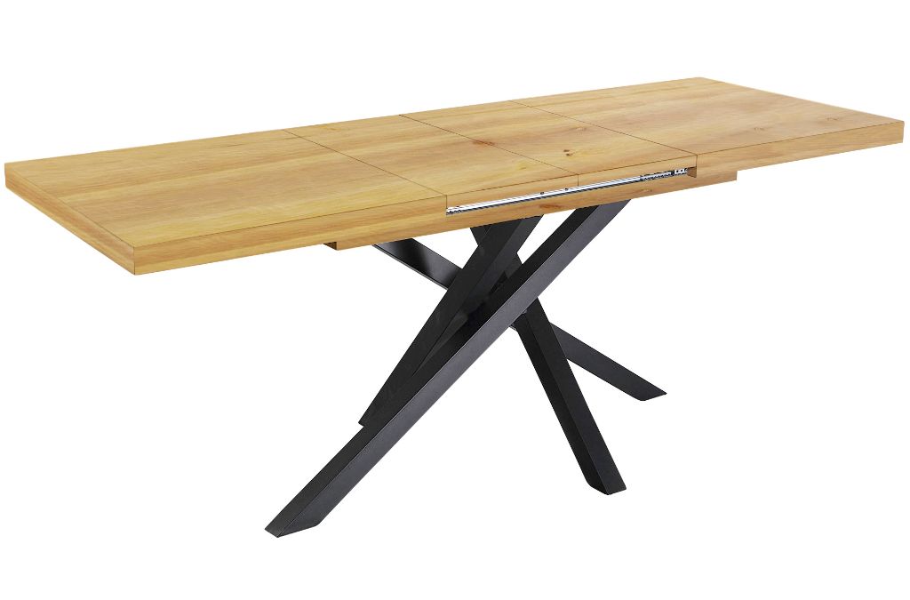 Tapa y extensibles en madera de cedro Extensible de 140 a 180 o 220 cm. 2 extensibles independientes 40 cm. Almacenaje de extensibles bajo la tapa. Patas metálicas color negro. Topes de suelo regulables. Medidas: Largo cerrada 140 cm Abierta de 180cm a 220cm Ancho 90cm Alto 76 cm.