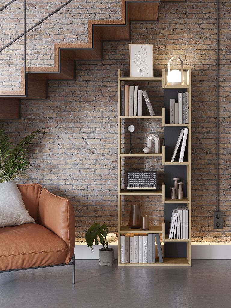 ESTANTERIA KLAPO 5 ESTANTES DE 60CM REF. 17064 ROBLE/NEGRO SILKY
