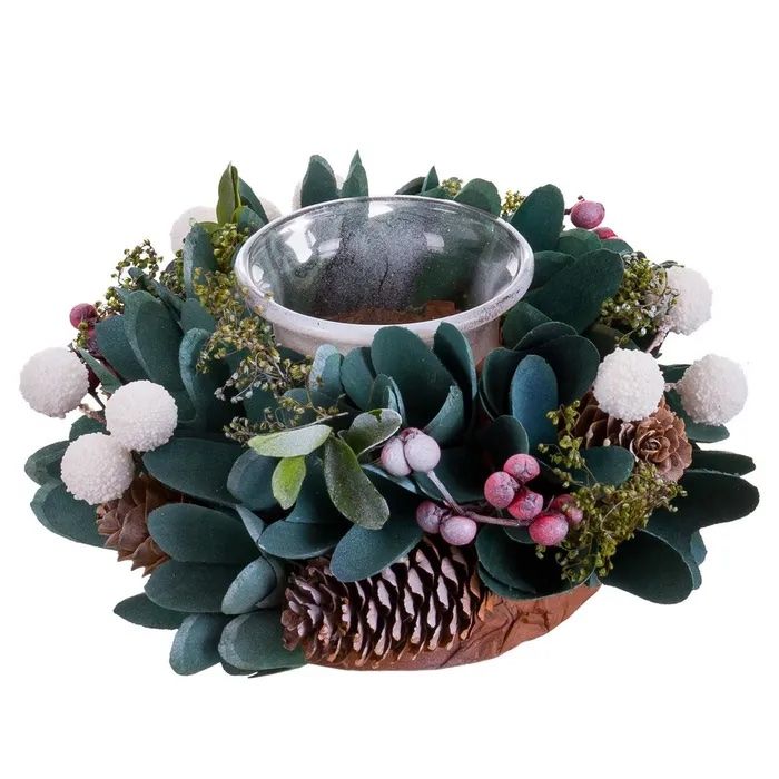 CENTRO 1 PORTAVELA FOLLAJE ACEBO 16X8 REF.742793 VERDE