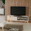 MESA TV 1 PUERTAS 2 CAJONES DE 140CM KIARA REF. 12662 BLANCO/NATURAL