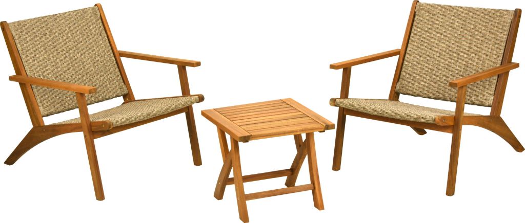 SET GARDEN FURNITURE 2 SILLON CON BRAZOS + MESA AUXILIAR EXTERIOR VM2000020 ACACIA/TEXTILENE NATURAL