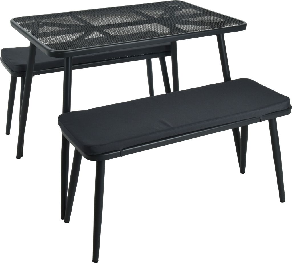MESA + 2 BANCOS DE 90CM EXTERIOR X81100200 ACERO GRIS OSCURO