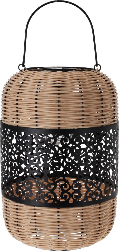 LINTERNA SOLAR CON CUERDA DE PP Y CUBIERTA DE METAL, TAMAÑO: DIA 24XH36CM, LINTERNA DE COLOR NATURAL CON PATRÓN NEGRO, NO CRISTALINA + 1X 1.2V AAA 300MAH NI-MH BATERÍA RECARGABLE INCLUIDA, 2 PIEZAS DE LUZ LED, BOMBILLA DE PLÁSTICO
