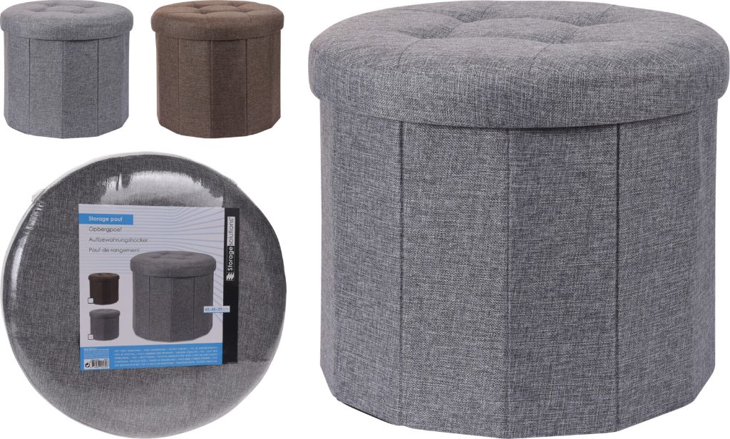 CAJA DE ALMACENAMIENTO Y ASIENTO REDONDO, 62LTR/2096OZ, TAMAÑO 45X45X39CM, PESO 2400 GRAMOS, 100 POR CIENTO POLIÉSTER