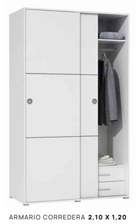 ARMARIO 2 PUERTAS CORREDERAS 120x55x210 CON CAJONERA S100 ECO BLANCO