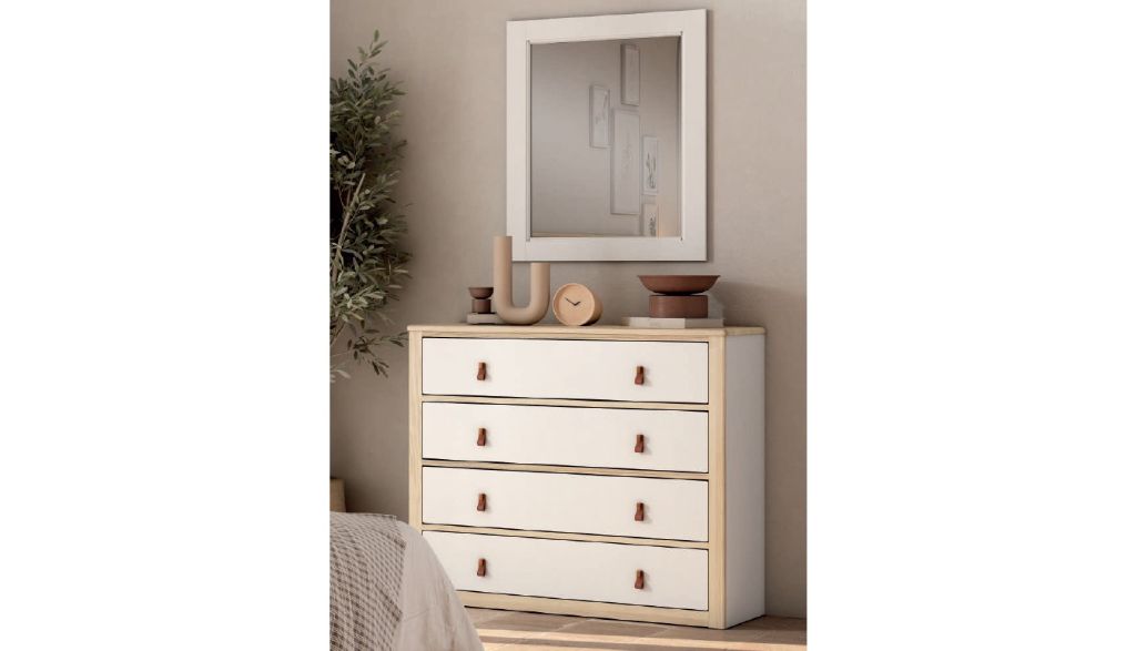 COMODA 4 CAJONES VIDA REF. P05003.20 CON PATAS BLANCO/NATURAL