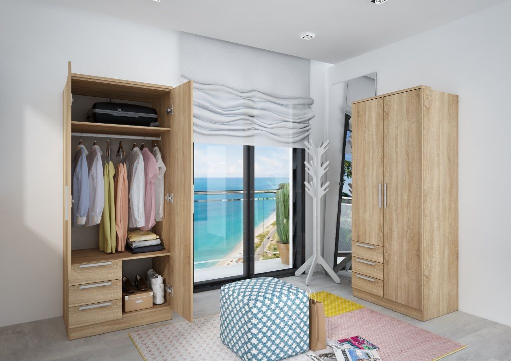ARMARIO 2 PUERTAS 3 CAJONES 202x80x52 ECO+ REF.1017 ROBLE