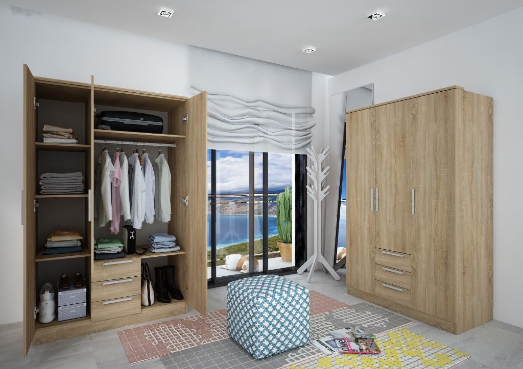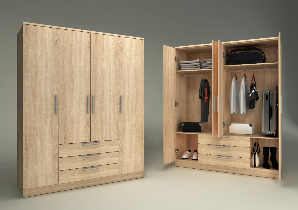 ARMARIO 4 PUERTAS 3 CAJONES 202x160x52 ECO+ REF.1021 ROBLE