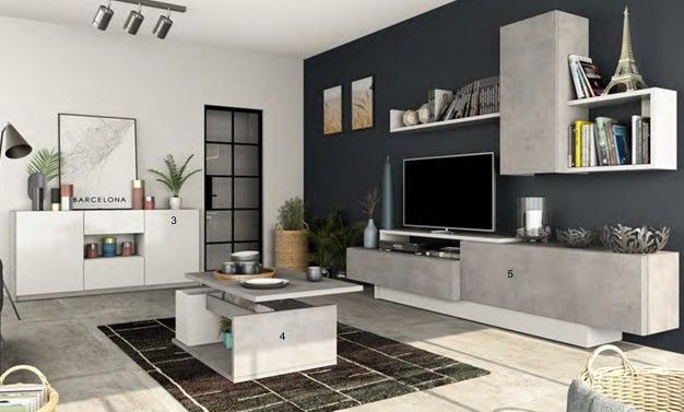 APARADOR 2 PUERTAS 2 CAJONES L184xF43xA83 OTAWA REF.8029 BETON/BLANCO BRILLO