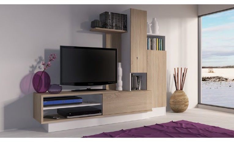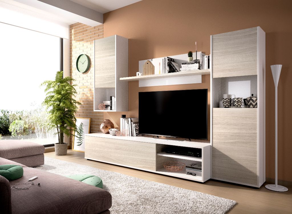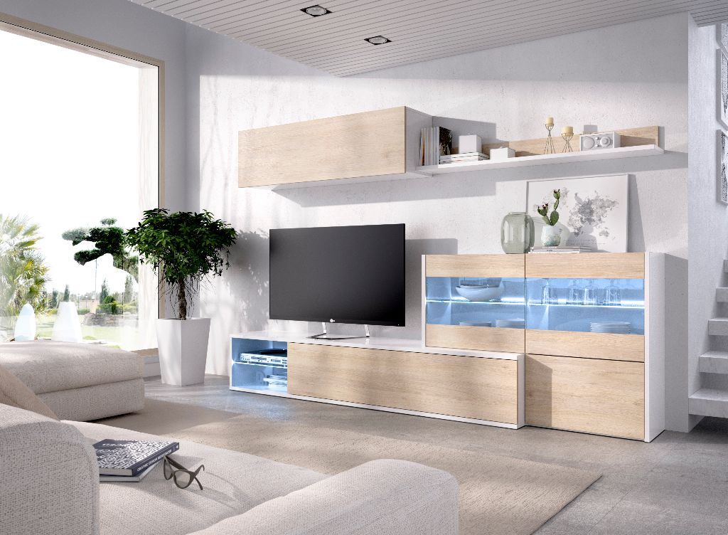 MESA TV CEQUOIA 2 PUERTAS DE 230CM REF. 17294 BLANCO/ROBLE