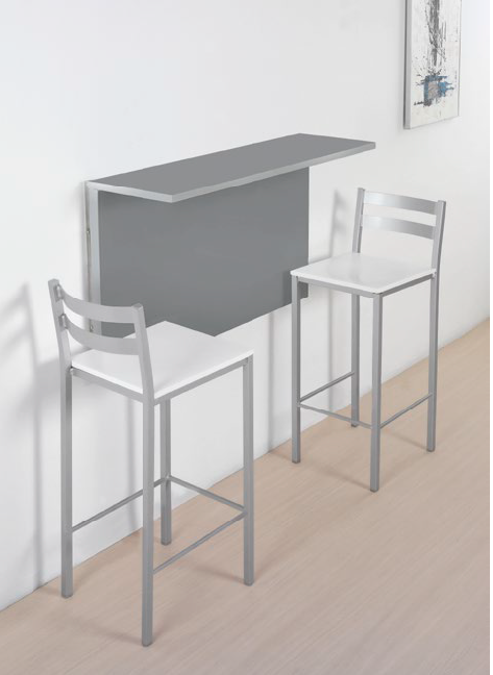 MESA COCINA PARED 90x30 (50CM ABIERTA) 674/689 ALUMINIO CRISTAL BLANCO