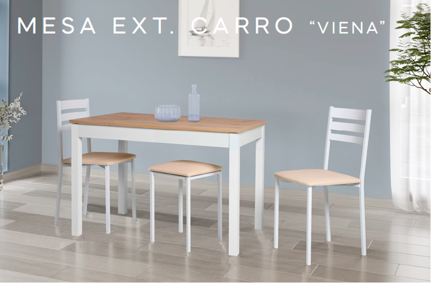 MESA COCINA VIENA EXTENSIBLE CARRO 110x70 (170CM) 903 PATAS BLANCO TAPA MELAMINA AMAZONAS