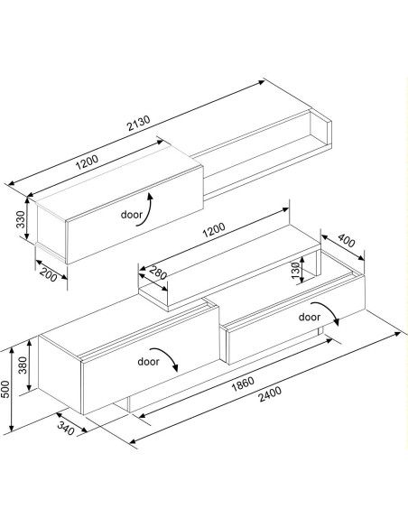 MESA TV CEQUOIA 2 PUERTAS DE 230CM REF. 17296 ROBLE/NEGRO SILKY