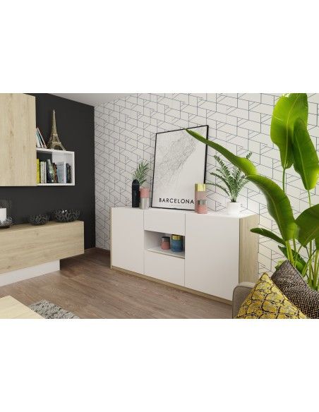 APARADOR PARIS 2 PUERTAS 4 CAJONES DE 152CM BLANCO SOUL/ROBLE ROAD