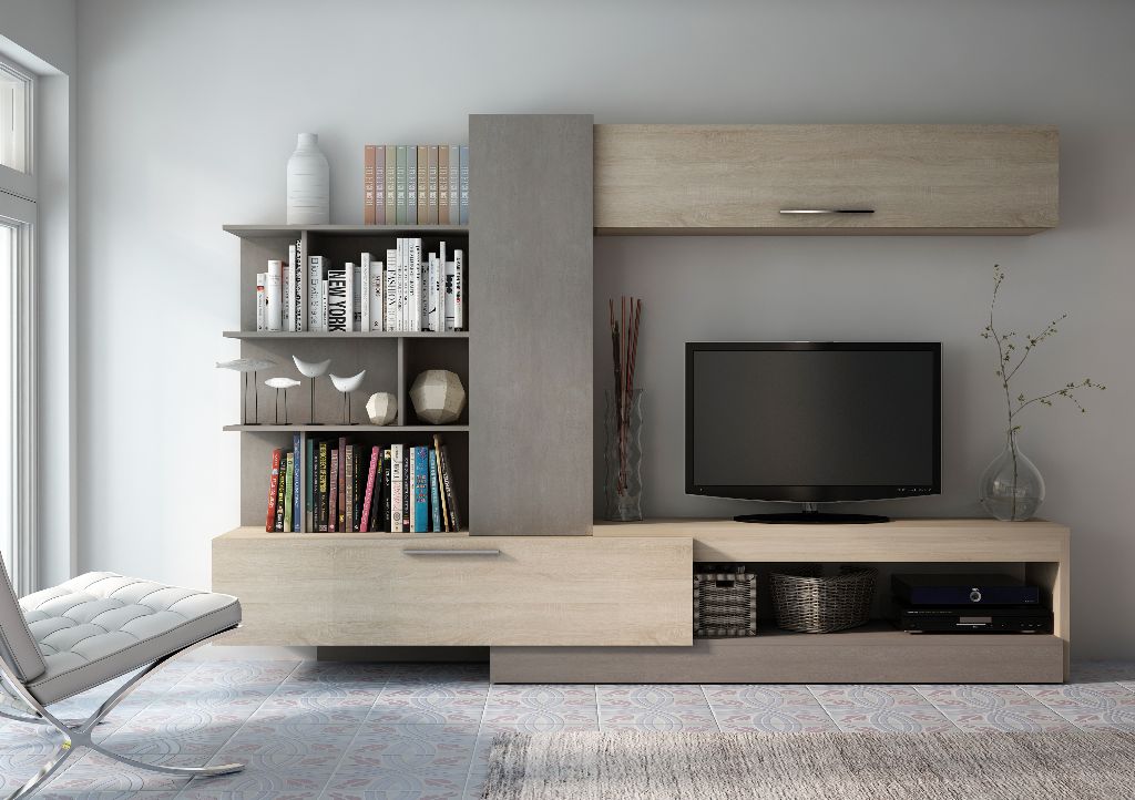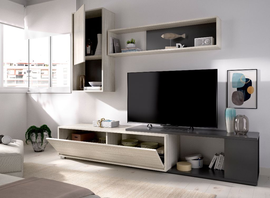 MESA TV 1 PUERTA 2 CAJONES BRUNA REF. 13195 CERA/GRIS