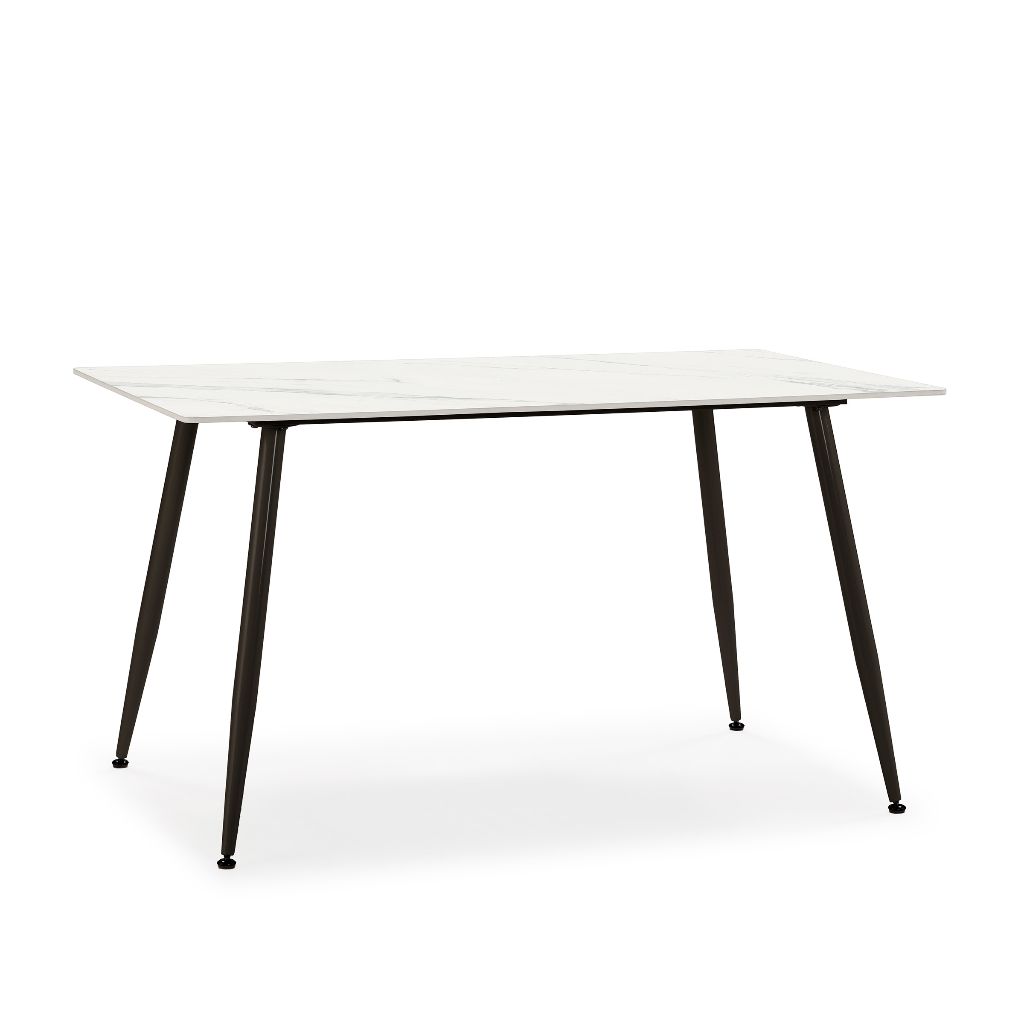 MESA RECTANGULAR FIJA 140 MINKA REF. 19095 CERAMICA BLANCA PATA METAL NEGRO