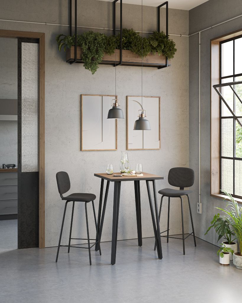MESA ALTA LOFT 70x70x100 REF. 1600020010 ROBLE NORDISH PATA NEGRO