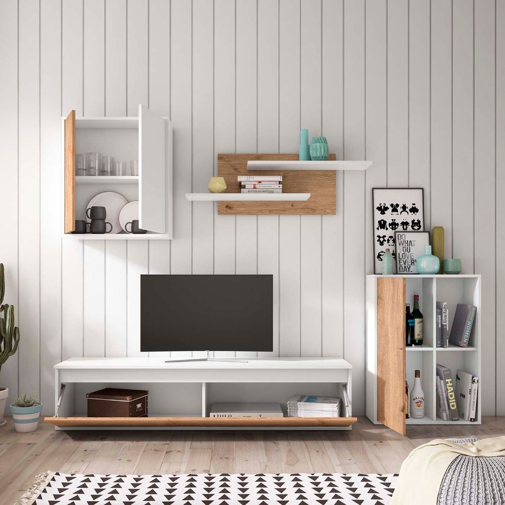 MESA TV NOLA 4 PUERTAS DE 180CM REF. 17031 COLOR ROBLE/BLANCO