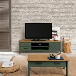 MESA TV 1 PUERTA 2 HUECOS 2 CAJONES MIRANDA REF.13130 VERDE/CERA